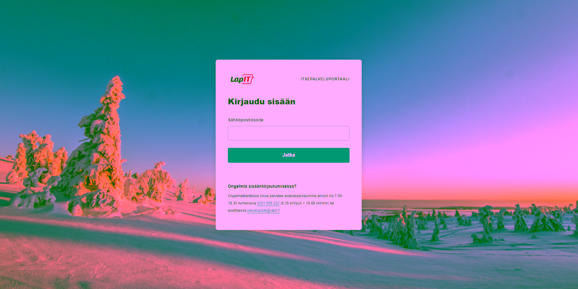 LapIT Asiakasportaali on asiakkaidemme arkea helpottamaan suunniteltu itsepalvelusivusto, jolle asiakkaamme voivat kirjautua mihin tahansa vuorokaudenaikaan tekemään muun muassa palvelupyyntöjä. Portaali on ollut useita vuosia asiakkaidemme käytössä, ja se on saanut vuosien aikana kehitystoiveita asiakkailtamme. Alusta, jolle LapIT Asiakasportaali oli rakennettu, ei kuitenkaan mahdollistanut suurinta osaa näistä toiveista, joten alustan vaihtaminen oli ajankohtainen kehittämiskohde meille LapIT:lla. Päätimme alustan vaihdon yhteydessä samalla uudistaa sivuston yleisilmeen vastaamaan viime marraskuussa uudistuneiden verkkosivujemme värimaailmaa, sekä ottaa käyttöön portaalin uudeksi nimeksi LapIT Itsepalveluportaali.